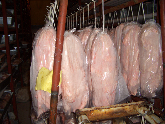 豬肉宰殺后要經歷尸僵階段、成熟階段、自溶階段、腐敗階段。在一般溫度下,豬肉在放血1-2小時就進入尸僵階段,處于這一階段的肉堅硬、干燥,無自然芬芳的氣味,不易煮爛,又難以消化。經過24-48小時后,才進入成熟階段。這時的豬肉柔軟、多汁,具有芬芳的氣味,滋味鮮美,易煮爛,也易消失,而且還能分泌出大量的乳酸,殺死有害的微生物。繼續變化下去,就進入自溶階段和腐敗階段,這時豬肉即開始變質。直至最后不能食用。所以處于成熟階段的畜肉最適合食用。
